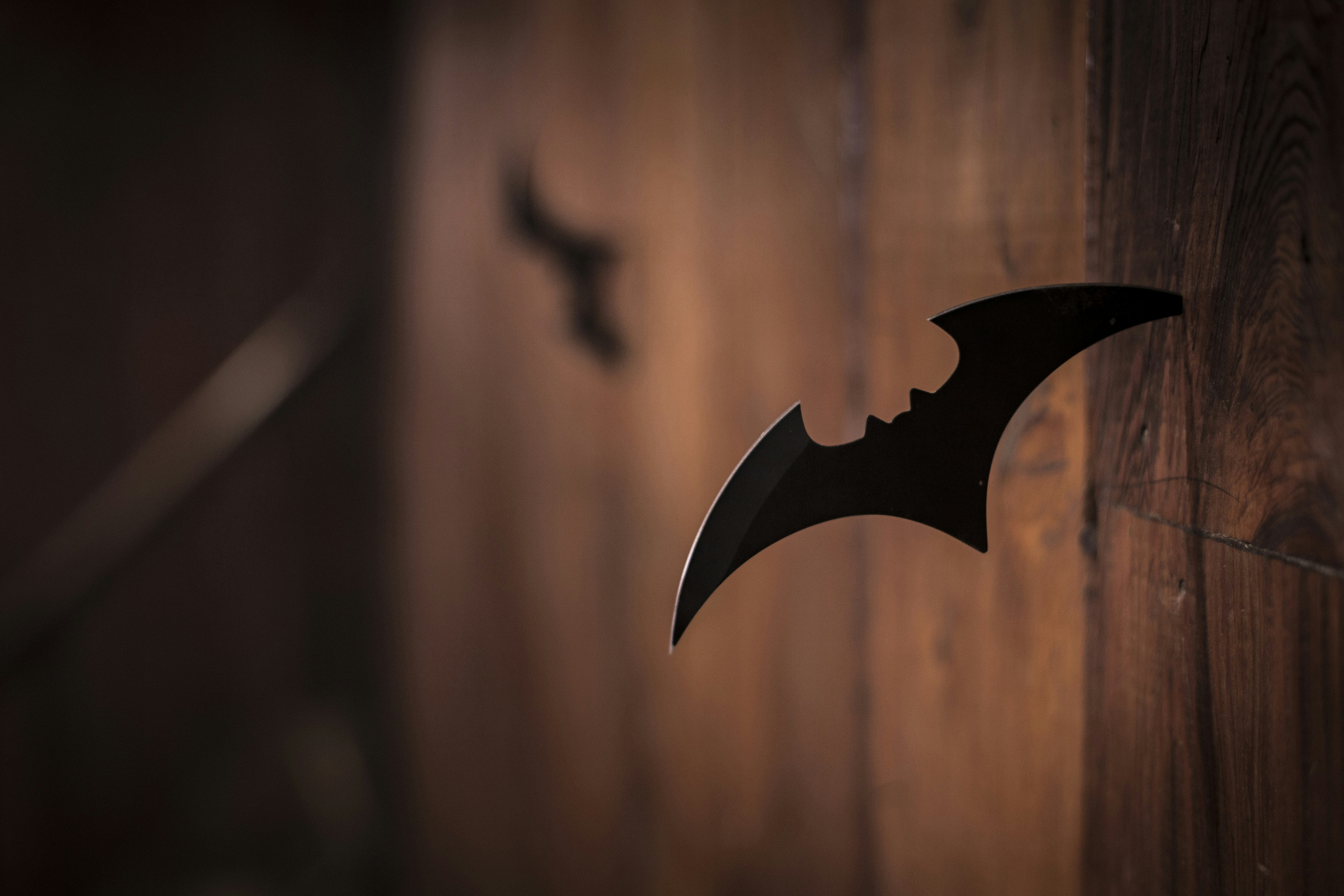 closeup photo of shuriken on wood